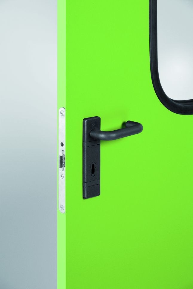 Този размер врата не се поддържа на склад и със срок на доставка около 8 седмици. Термоизолиращо крило с пълнеж от пчелна пита. Обратимо крило. По време на монтаж се определя отварянето – ляво или дясно. 2 панти лагерни. Покритие: Горещо поцинковани каса и крило, боядисани с гарантирана дебелина на покритието в цвят по. Може да се поръча в много цветове без оскъпяване (RAL1013, RAL1015, RAL5010, RAL7016, RAL7024, RAL 7035, RAL7038, RAL9001, RAL9002). Другите цветове имат оскъпяване. Цялата врата е поцинкована, включително и скритите части. Има защита от корозия дори и по ъглите на разяне на материалите при производство. Към всяка врата може да се монтира автомат за самозатваряне, анти-паник лост за аварийно отваряне, падащ праг, задържащи електромагнити, прозорци.